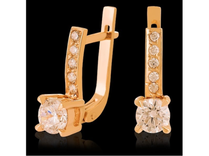 Серьги, представленные перед вами на фото, – универсальное украшение, которое по достоинству оценит каждая девушка.Скромный круглый камушек циркония надёжно удерживается четырьмя золотыми лапками, а кверху от него идёт золотая полоска, усеянная пятью блестящими камнями циркония. Английский замок крепко фиксирует серьги в ушах, препятствуя случайной потере.